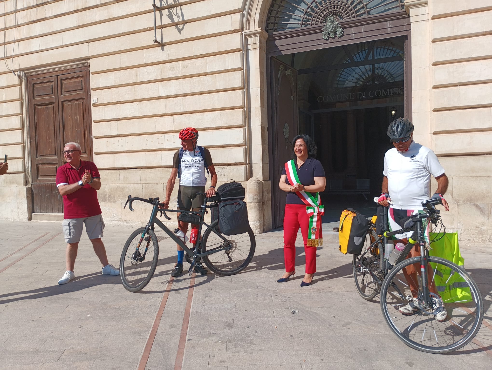 Questa mattina il via al comune, salutati dal sindaco Maria Rita Schembari che ha consegnato loro una bandiera siciliana, un gagliardetto del comune e due piccole pubblicazioni che presentano la cittadina: al termine del viaggio Leonardo e Dino li consegneranno al sindaco di Sondrio, quale simbolo di gemellaggio e di amicizia. “Portate nel vostro viaggio un messaggio di cultura, di amicizia e di pace” ha detto Schembari. I due ciclisti nel primo pomeriggio sono arrivati a Noto. Domani è in programma l’incontro con gli amministratori di Noto e Avola, quindi la seconda tappa verso Siracusa.
